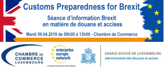 Une séance d'information Brexit en matière de douane et accises a été organisée le mardi 9 avril 2019 de 09h00 à 13h00 dans les locaux de la Chambre de Commerce du Luxembourg.